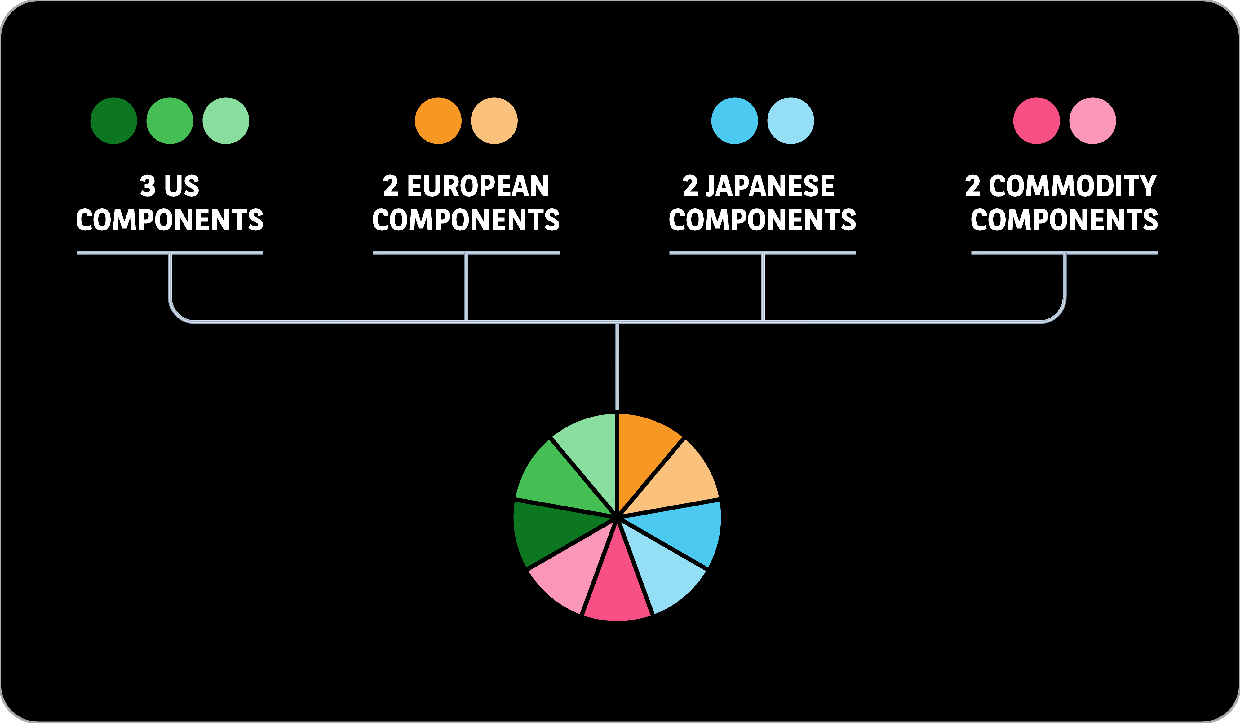 The Index is comprised of 9 components, covering 3 asset classes (equities, bonds and commodities) and 3 regions (US, Europe and Japan).