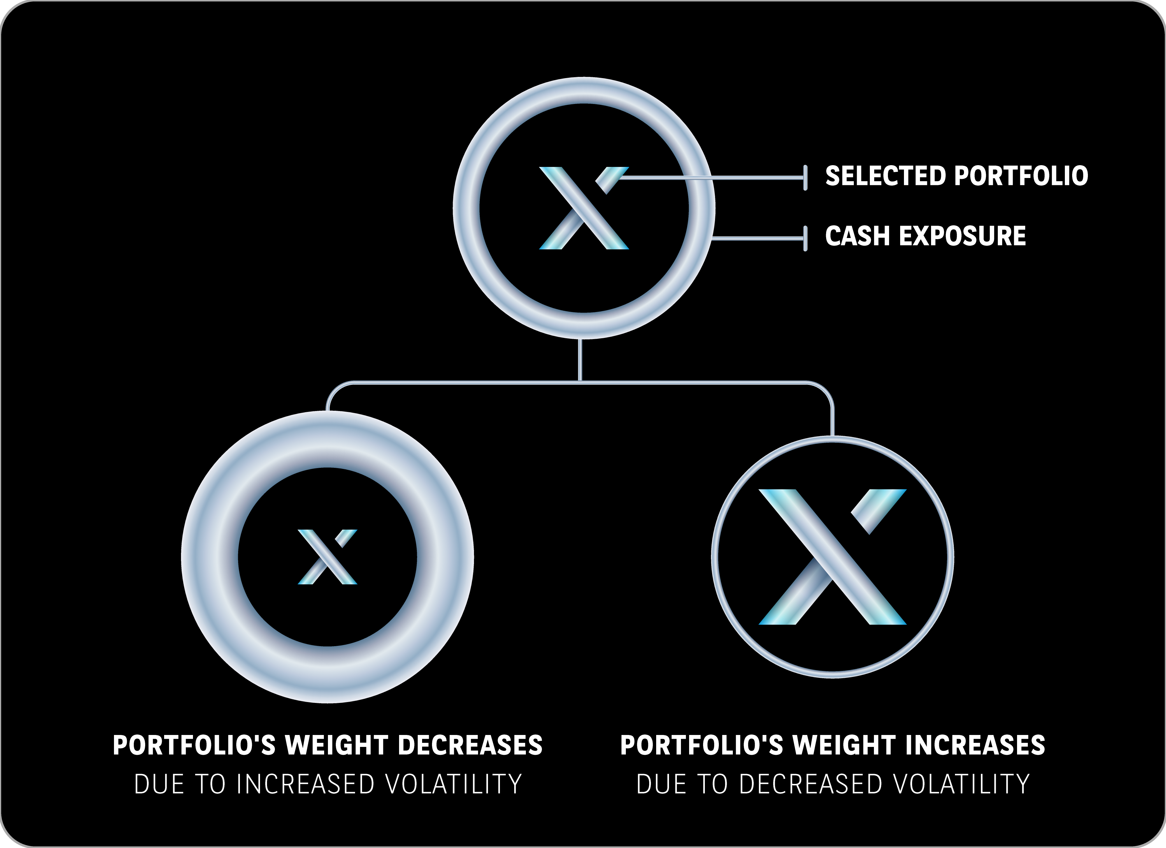 The Index targets a short-term annualized volatility of 5%. When short-term volatility of the Portfolio is above 5%, the Index will decrease the Portfolio’s weight and increase the weight of the non-remunerable cash exposure, and vice-versa.