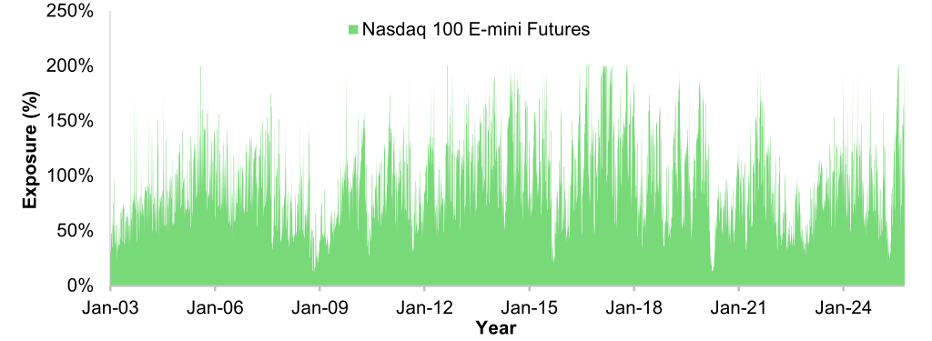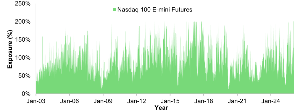 Source: Bloomberg, BNP Paribas from 31st December 2002 to .. Past performance is not an indicator of future performance. The Nasdaq Night Owl Index <NIGHTOWL Index> is based on Hypothetical Past Performance Data (”PPD”) prior to the Index Launch Date on 20th Sep 2024, actual/historical performance begins after Launch Date. Because the Nasdaq Night Owl Index did not exist prior to the Launch Date, all retrospective levels provided in the graph and table above are simulated and must be considered illustrative only. The presentation of hypothetical data reflects the deduction of fees and charges. These simulations are the result of estimates made by BNP Paribas at a given moment on the basis of the parameters selected by BNP Paribas, certain assumptions that may or may not hold in future periods, of market conditions at this given moment and of historical data, which should not be used as guidance, in any way, of the future results of the Nasdaq Night Owl Index.